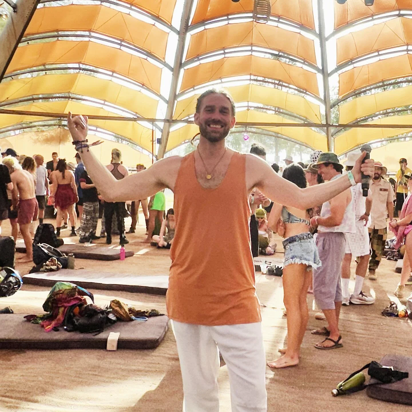 A long-time student of 5Rhythms and a seasoned live musician, Joshua has been shaping journeys for ecstatic dances and conscious communities for over a decade. His sets are carefully designed to move bodies through different tempos, textures, and “shapes,” offering a dance experience that is both playful and cathartic. Beyond DJing, Joshua brings live instruments into his performances — from hand percussion and piano to the occasional trumpet — creating a unique hybrid of electronic and organic sound.